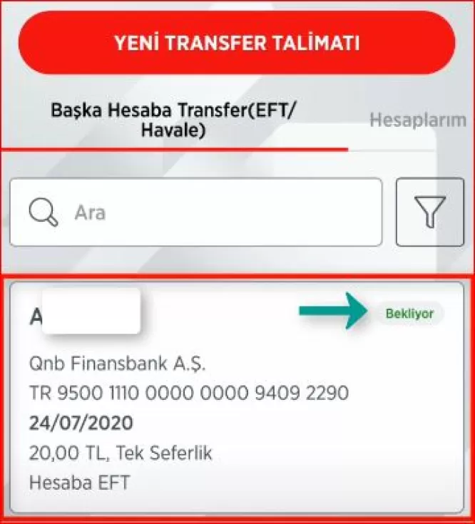 5- Beklemede olan para transferinin seçimini yapın.