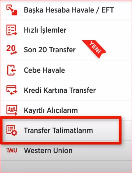 4- Şimdi de TRANSFER TALİMATLARIM sekmesini tıklatalım.