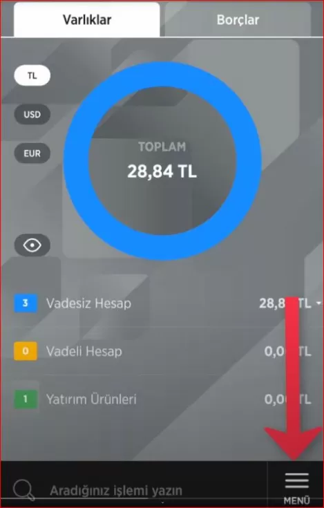 2- Giriş yaptıktan sonra sağ alt taraftan menü tuşuna tıklayalım.