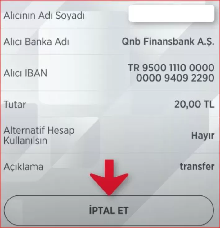 Bu işlemin sonrasında bekleyen para transferiniz anında iptal edilmiş olacaktır.